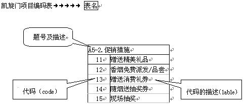 3 一些如口味、满意度、促销等方面的题,应该提供编码表,编码表的来源有以下两种: